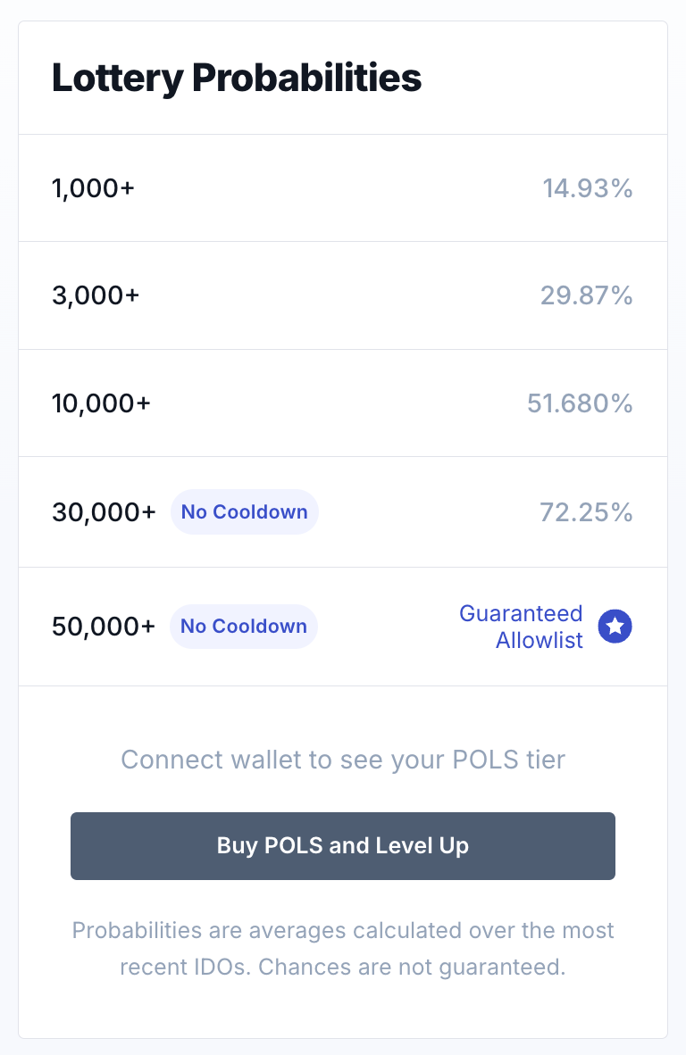 The more $POLS you have, the higher your chance of being allowlisted. Allowlisted users are guaranteed the opportunity to purchase their allocation in the IDO.