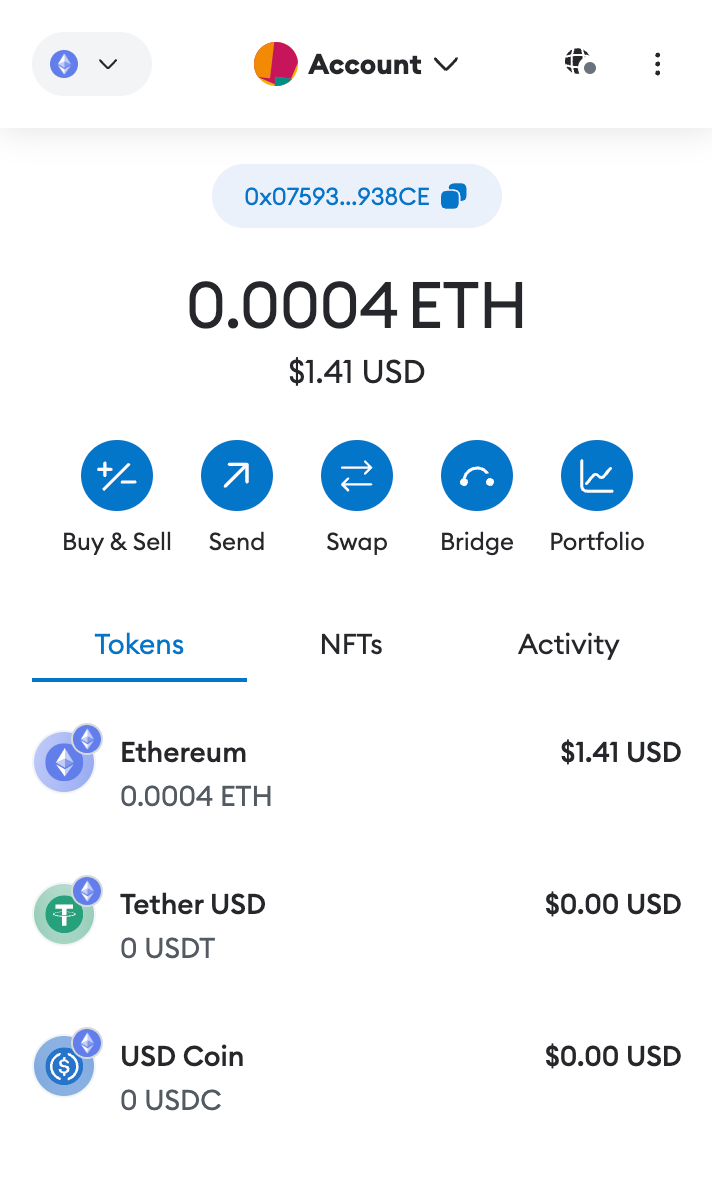 - Congratulations! You’ve just created a MetaMask account. It should look something like this: