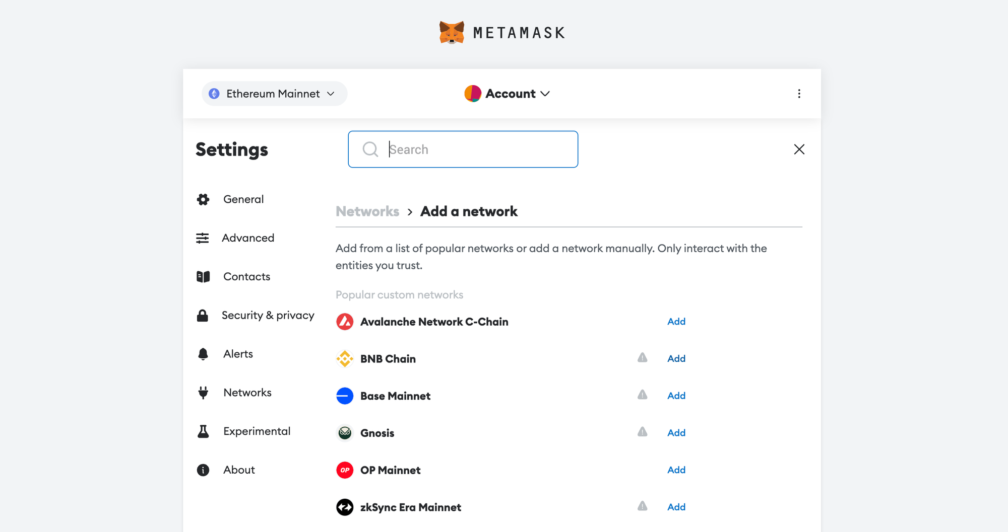 A simple guide with images on how to add the two networks to your MetaMask account
