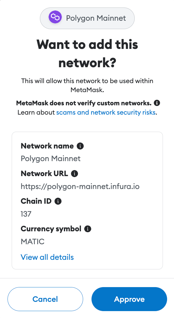 Click 'Add' near the Polygon Mainnet and approve the network.