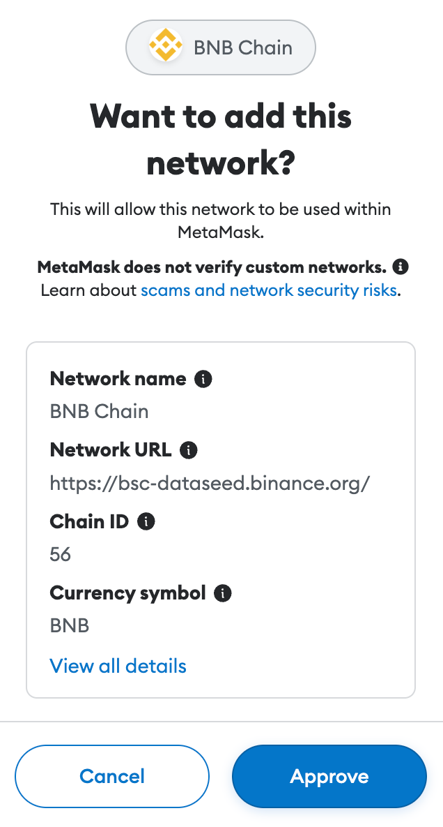 Add BNB Chain to MetaMask