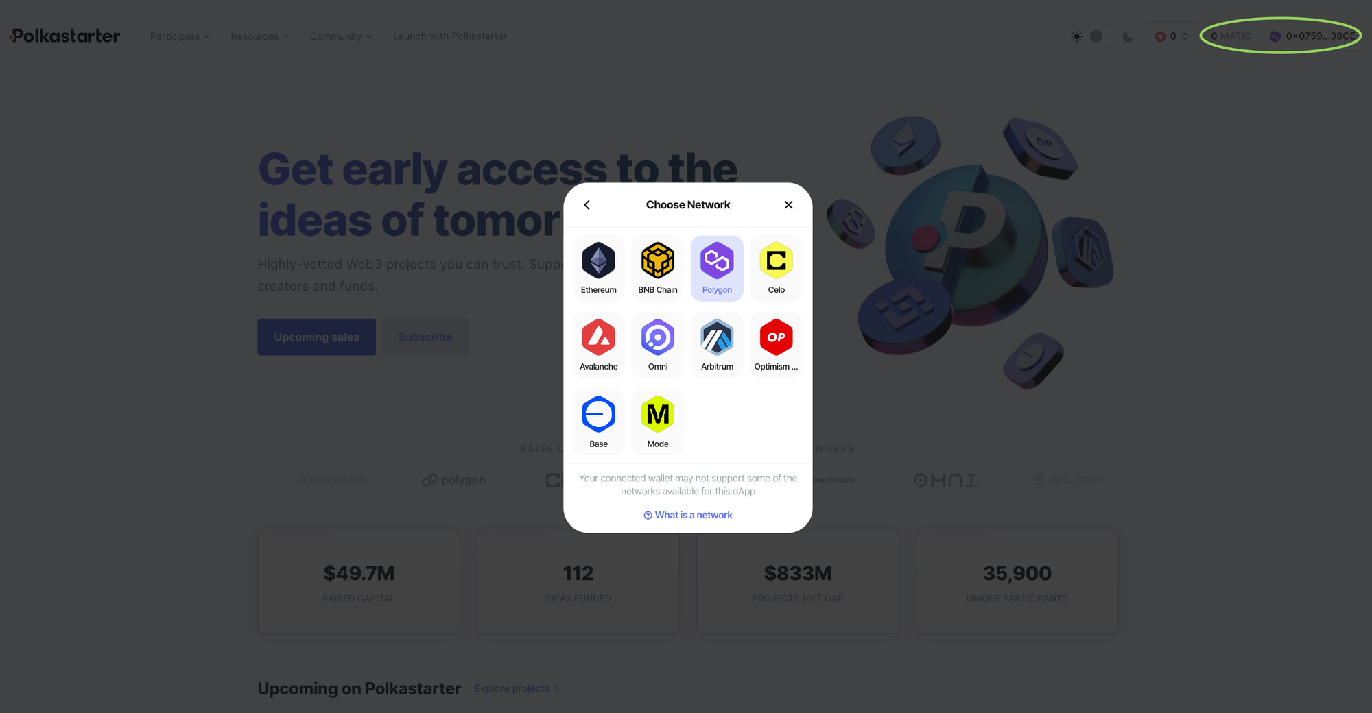 - If you have never used the Polygon network before, check out this article to add Polygon chain to your MetaMask and ensure your wallet is connected and funded before attempting to participate in a Polkastarter IDO Polygon pool.