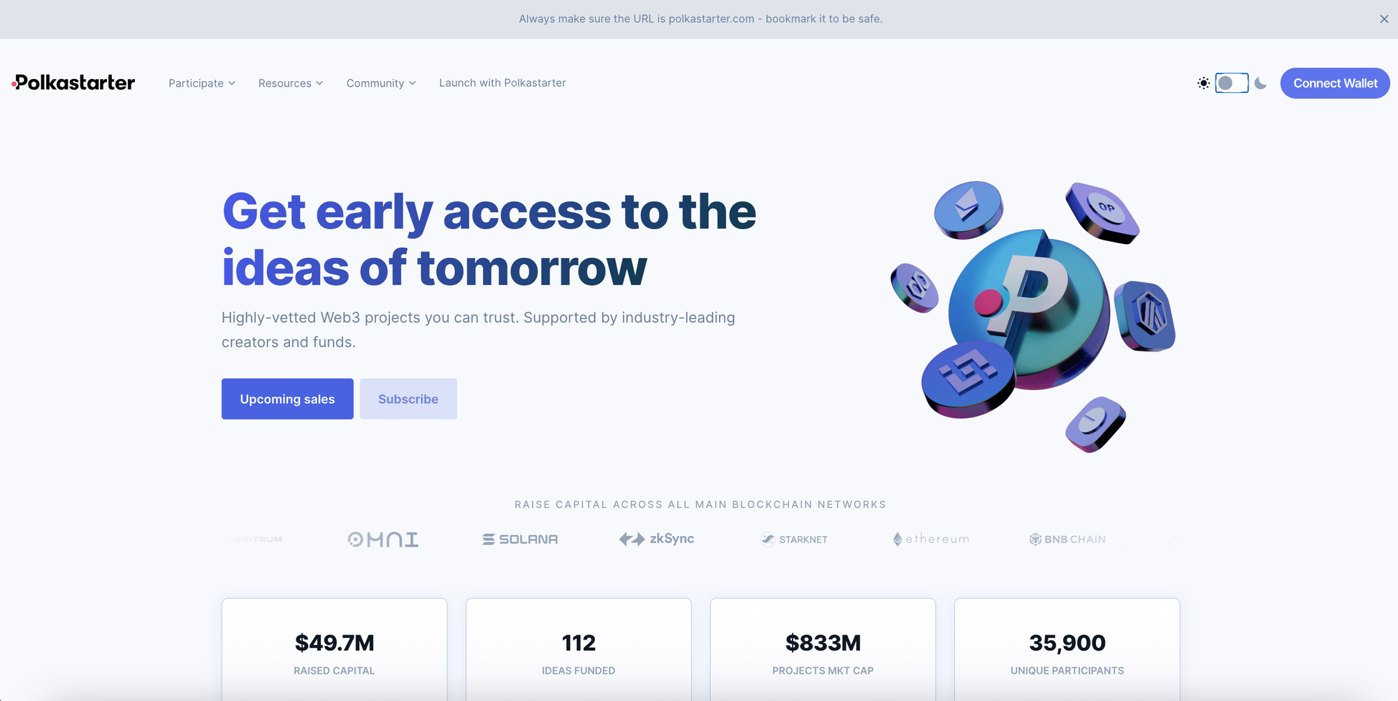 Go to Polkastarter.com and click “Connect Wallet” in the top right corner.