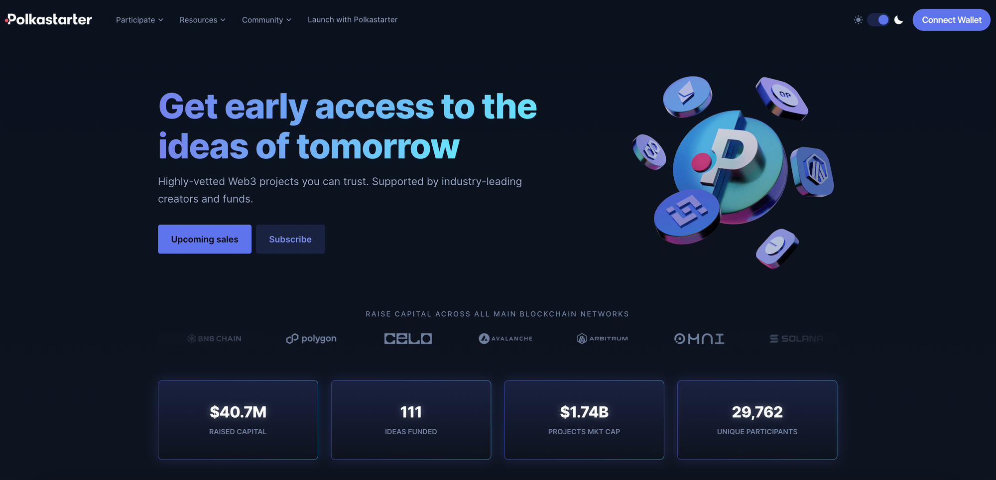 With Polkastarter, crypto projects can increase their reach, grow their communities and receive support from crypto's most well-versed experts. IDO participants, on the other hand, are offered an opportunity to invest in a secure and compliant environment, as well as participate in IDOs not solely on Ethereum, but also on Binance Smart Chain, Polygon, Celo and Avalanche.