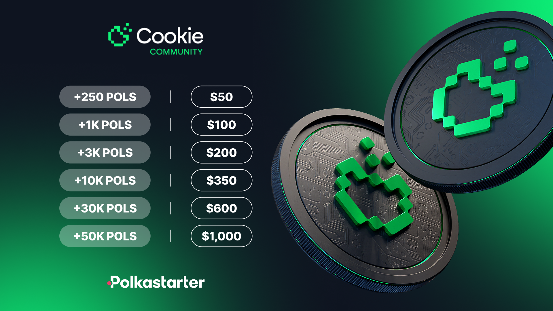 Read more in Cookie3 Litepaper or on the $COOKIE Project Page on Polkastarter.