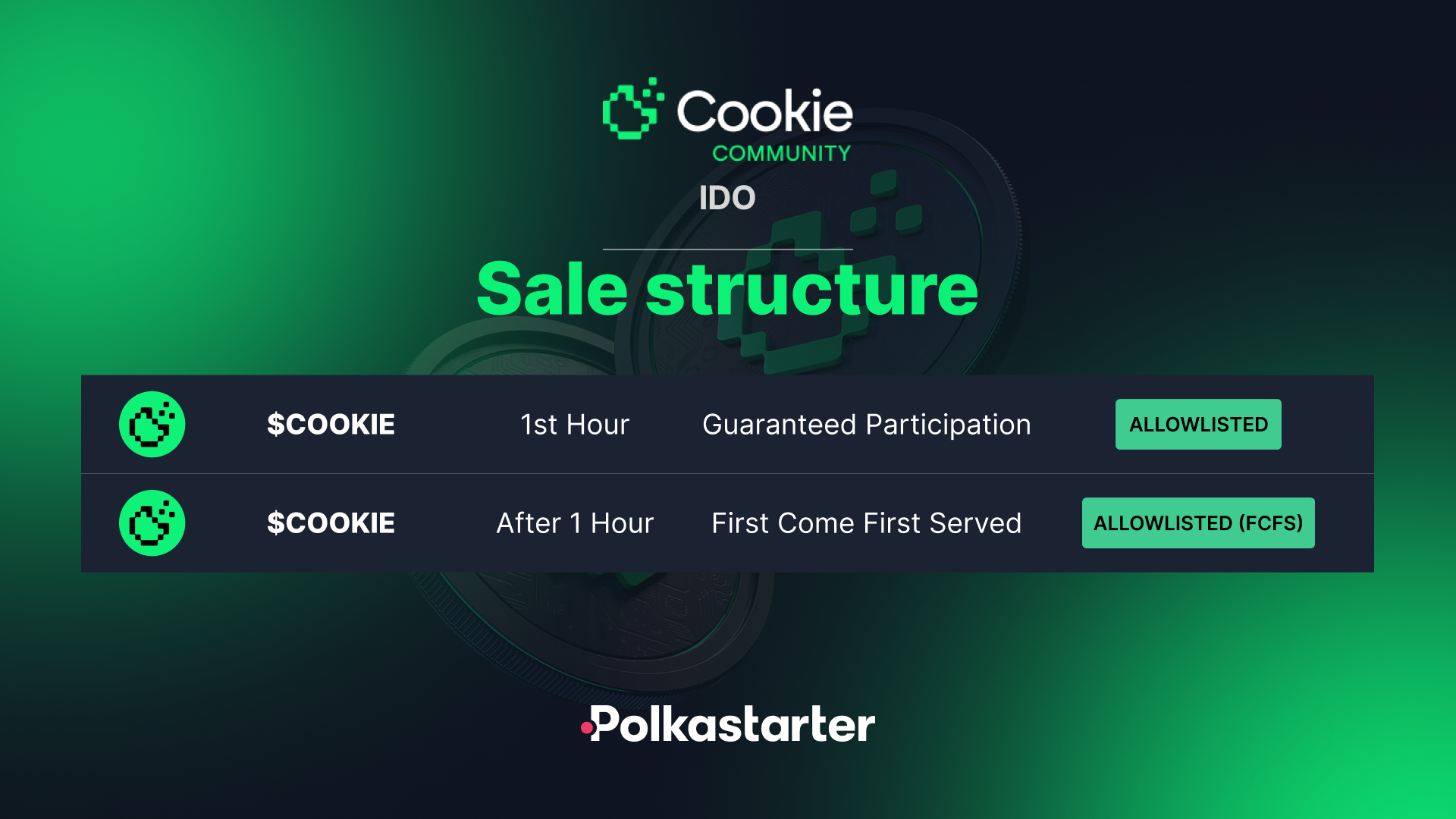 $COOKIE IDO will follow our updated Guaranteed Allocation sale model. Here's how the sale process will unfold: