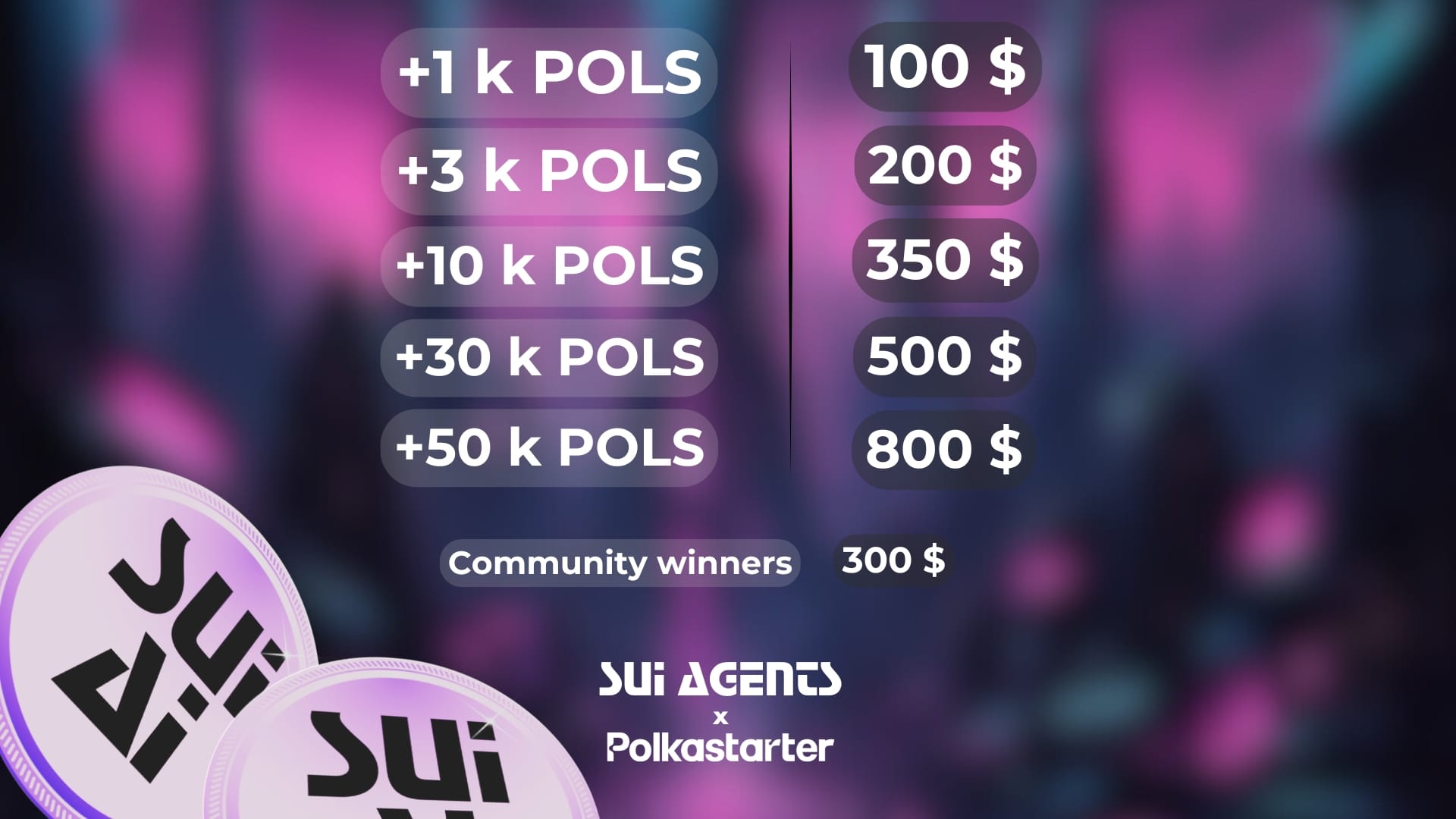 SUI Agents IDO will be subject to our standard tier-based allocation system. The allotted amounts are: