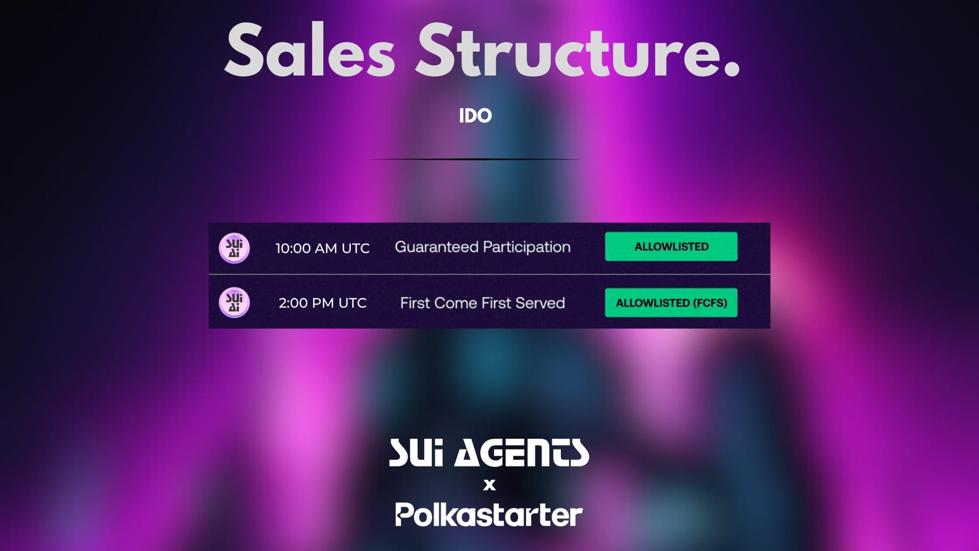 The SUI Agents IDO follows a guaranteed allocation flow, but there is a change - the guaranteed window will be open for four hours instead of just one.