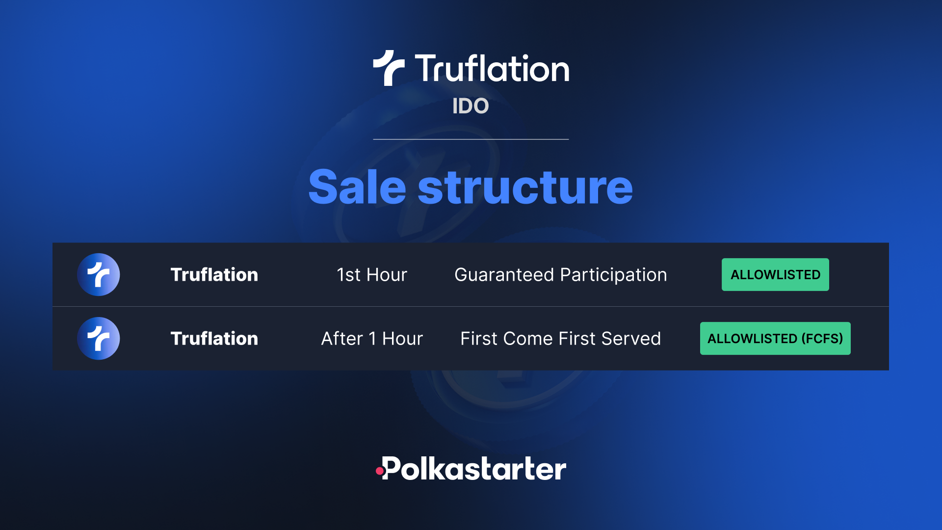 Truflation will be the first IDO (and second sale, following the GAM3S.GG Private Sale on April 4) to be conducted in the guaranteed allocation mode!