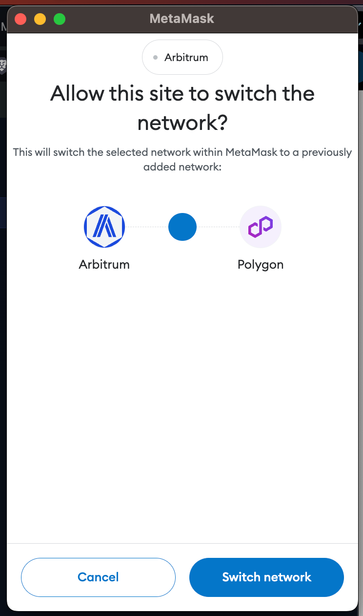 Your wallet will be prompted to switch to the correct chain and pay for the gas, and voila, you are all set!